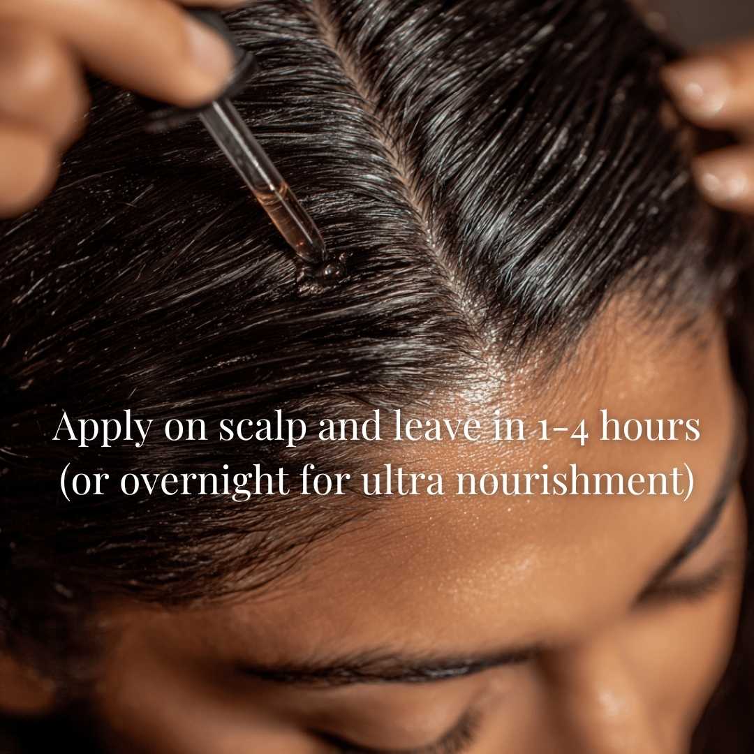 Apply 1-2 dropperfuls directly to dry scalp and hair roots. Massage gently for 2-3 minutes to stimulate circulation.